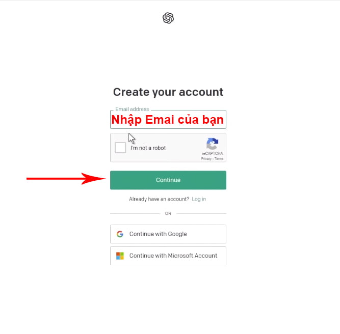 Các bạn nhập Email và mật khẩu vào. Nếu bạn đăng ký thành công, sẽ nhận được thông báo và OpenAI sẽ gửi cho bạn một email để các bạn xác thực.