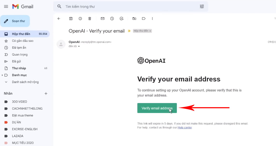 Và sau đó các bạn vào Email để xác nhận đã đăng ký tài khoản.