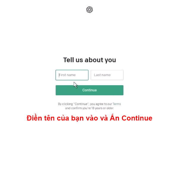 Các bạn nhập tên của mình và ấn tiếp tục