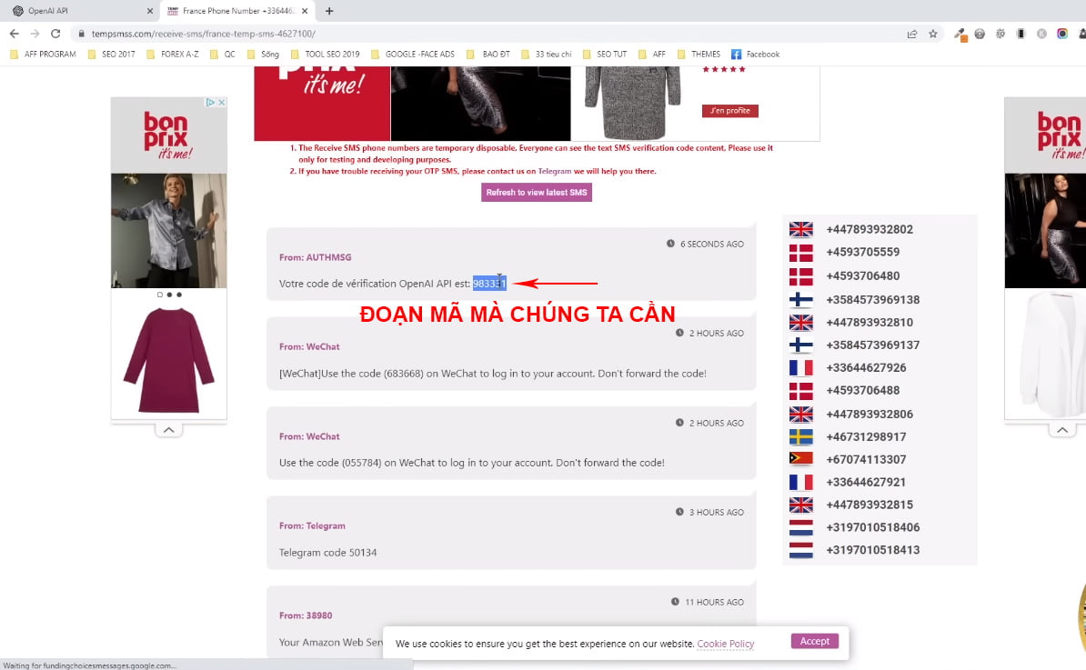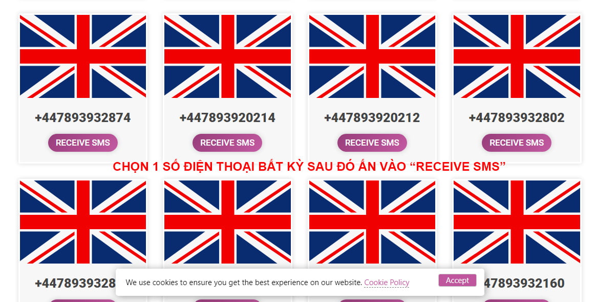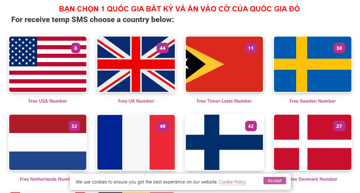 Bây giờ bạn cần 1 số điện thoại nước ngoài để đăng ký và nhận tin nhắn. Bạn hãy truy cập trang website: https://tempsmss.com/ để fix số điện thoại