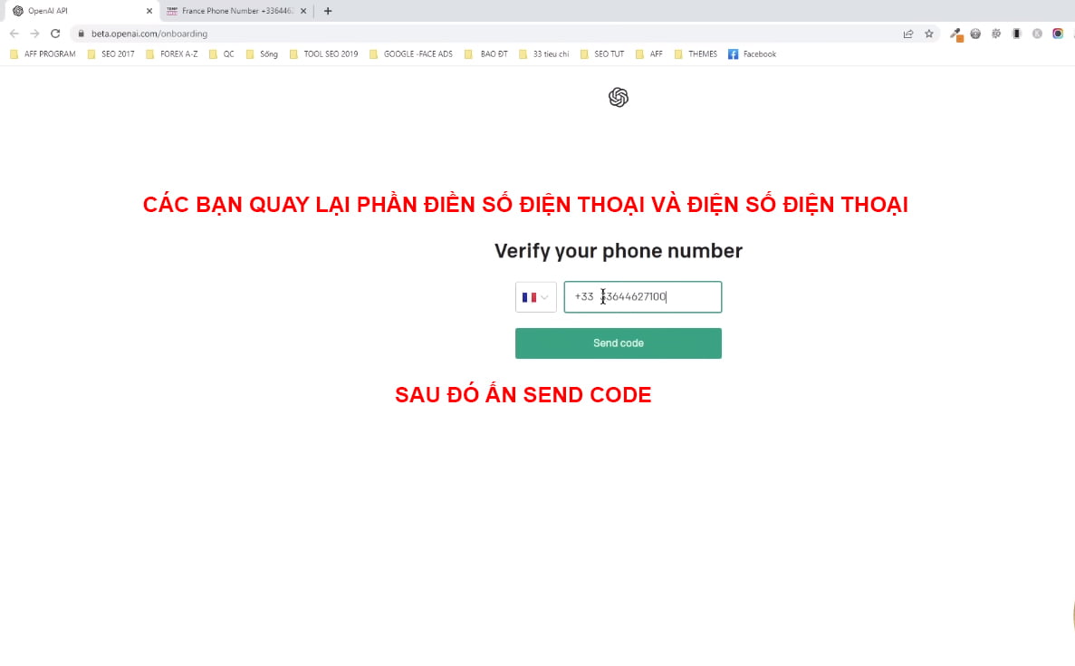 Quay lại điền số điện thoại vào ở Bước 2 và ấn “Send Code”
