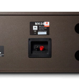 Toàn bộ cổng kết nối, tên model cũng như thông số kỹ thuật đều được bố trí ở mặt sau loa JBL MK08.
