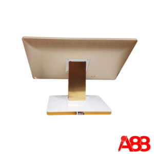 Đi kèm nâng đỡ màn hình là hệ thống chân đế được làm từ kim loại hình dáng uốn cong giúp sản phẩm có độ chắc chắn, dễ dàng mang hoặc di chuyển nhiều vị trí được linh hoạt. Phần đễ cũng được điểm nhấn vài miếng ốp nhôm màu vàng gold tạo nên tính đồng bộ cho sản phẩm.