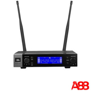 Mặt trước đầu thu là các nút hiệu chỉnh, logo thương hiệu và màn hình LCD hiển thị thông tin hoạt động của micro. Mặt sau là các cổng kết nối và ăng ten giúp cho micro JBL VM200 thu phát sóng tốt hơn.