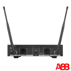 Bộ sản phẩm gồm đầu thu và 2 tay cầm micro. Phần đầu thu của Micro được thiết kế nhỏ gọn, tiện lợi với hình hộp chữ nhật quen thuộc cho người dùng dễ dàng bố trí, phối ghép với dàn âm thanh.